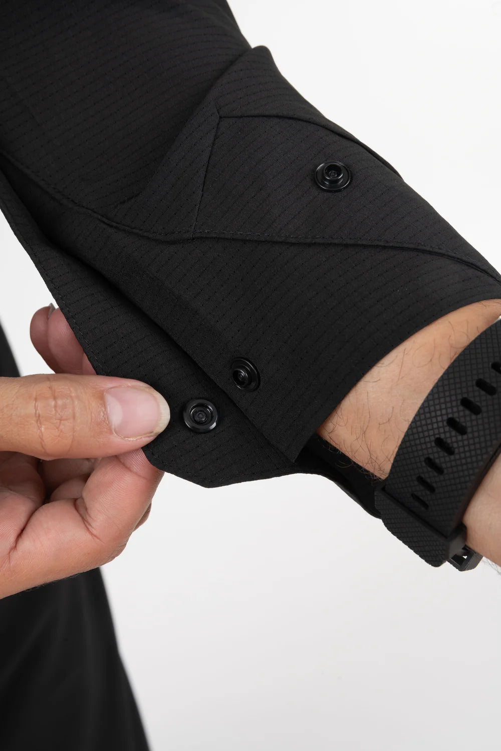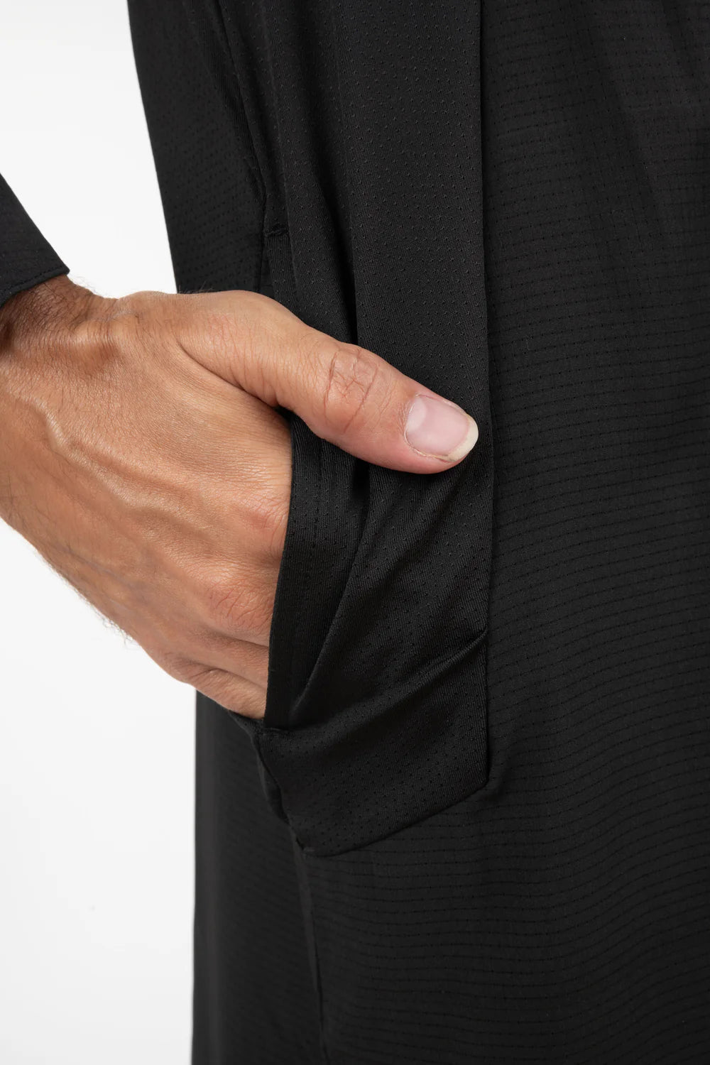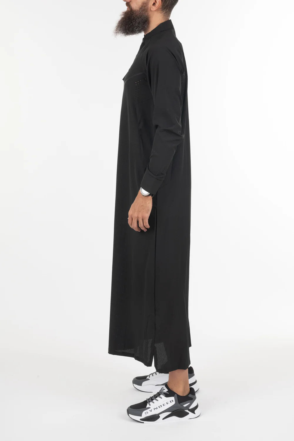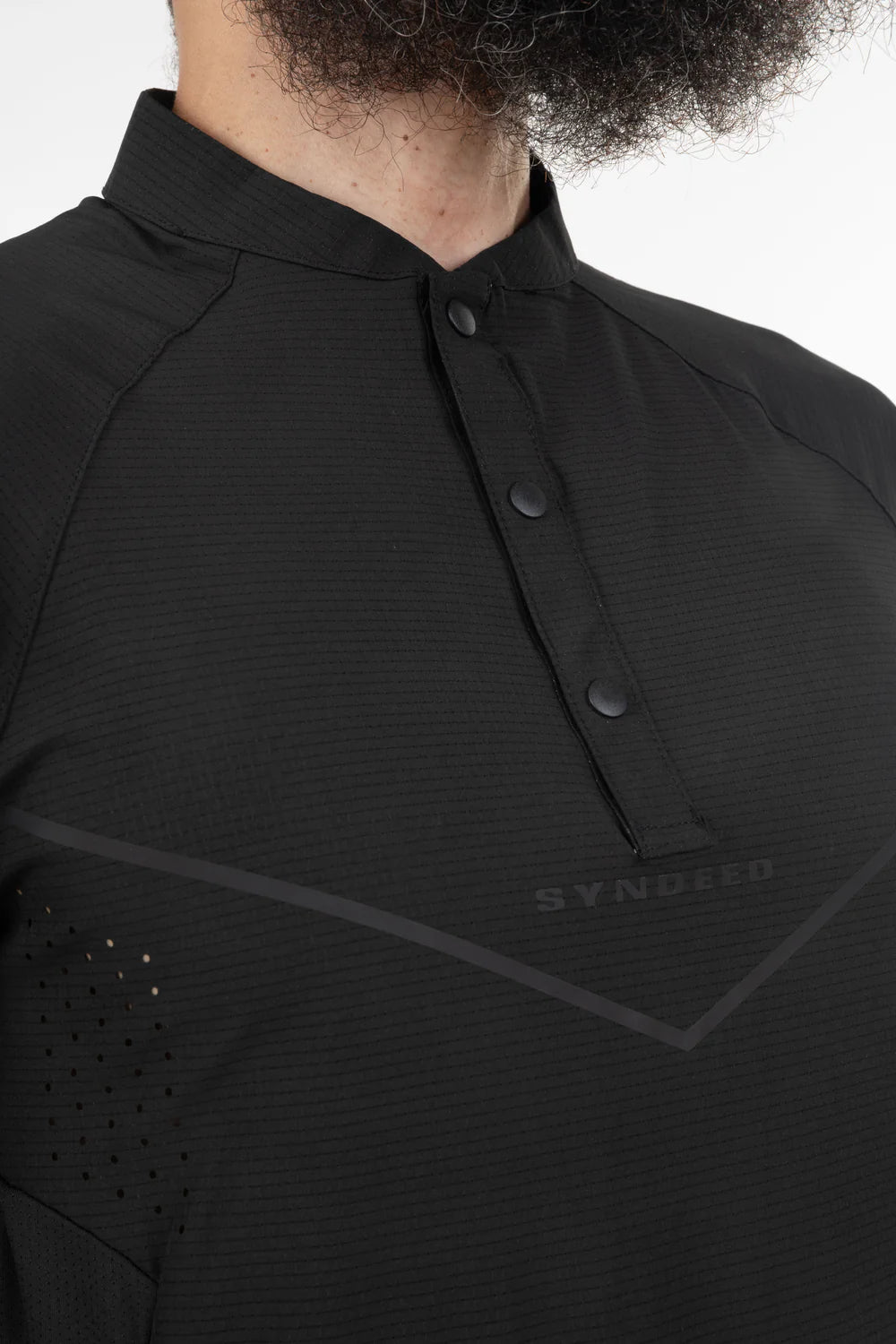 Le qamis Neo mis à jour en mode techwear, léger, trous d'aération, sur la poitrine, au dos, et sur les cotés, look sportif, col rond, ouverture à pressions, ajustement de l'ouverture des manches, poches latérales.