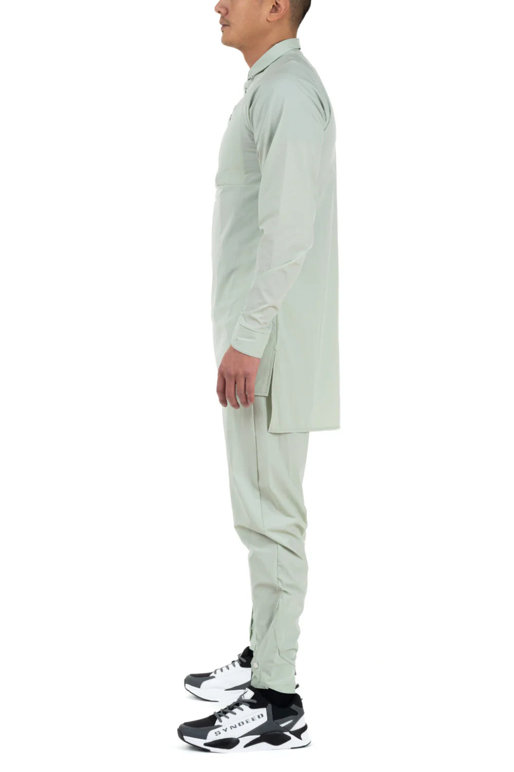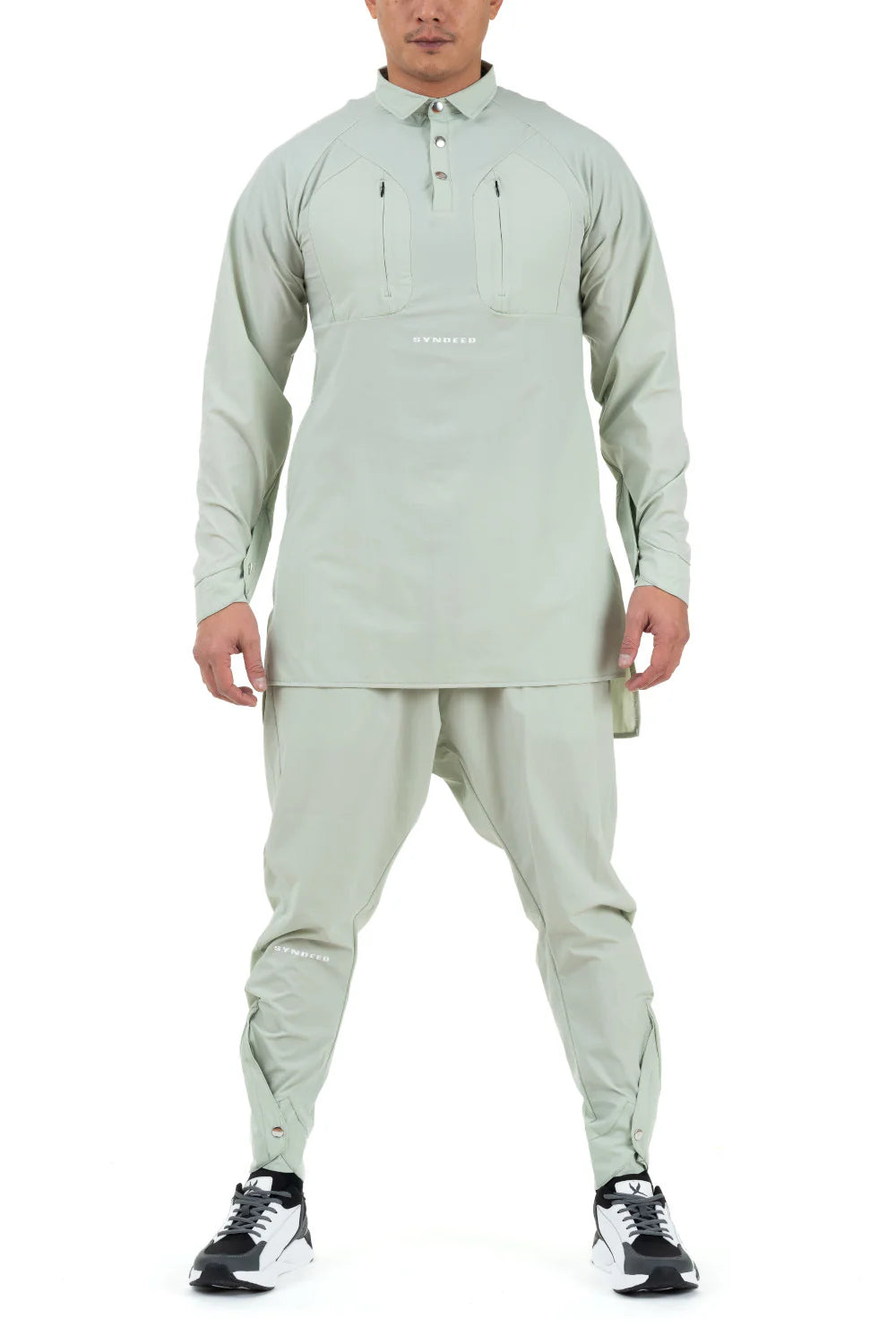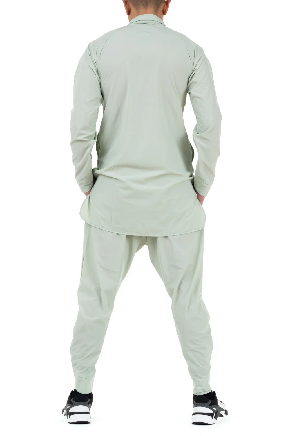 Ensemble haut manches longues + saroual, matière ultra-légère, look décontracté, col chemise, ouverture pressions, poches latérales.