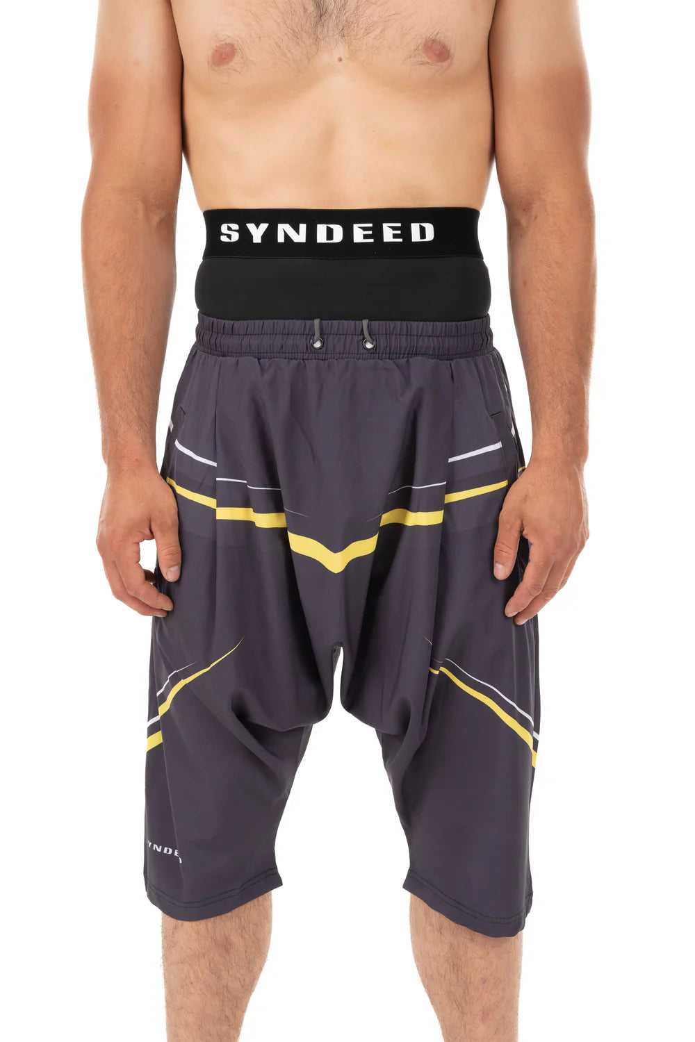 Version 2024 du short de bain Abyss, design futuriste, toujours ample à l'entre-jambe, rabat en lycra jusqu'au nombril.