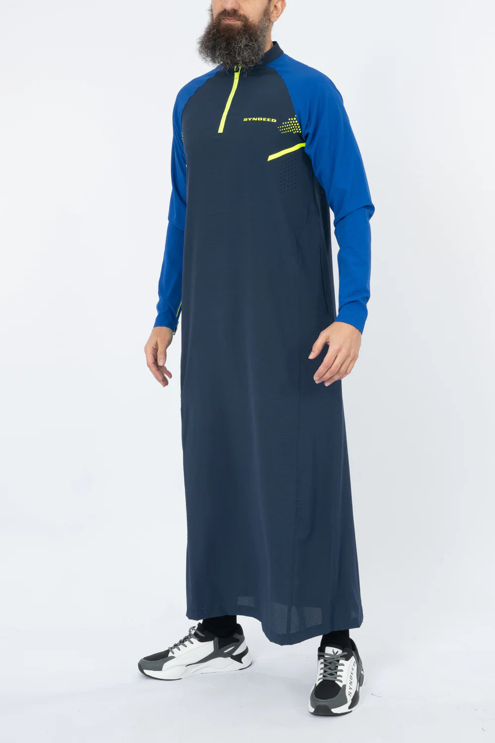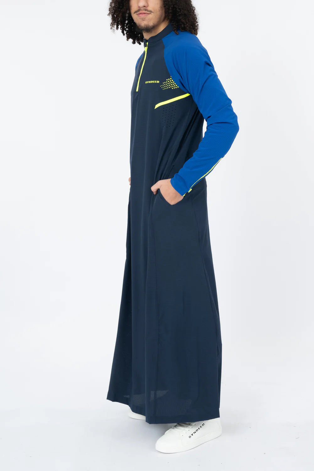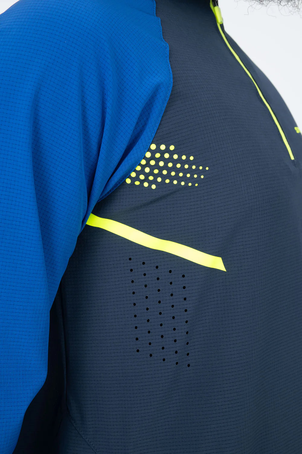 Le qamis Komodo, en tissu micro perforé, ouverture du col zippé, ajustement de l'ouverture des manches, poches latérales.